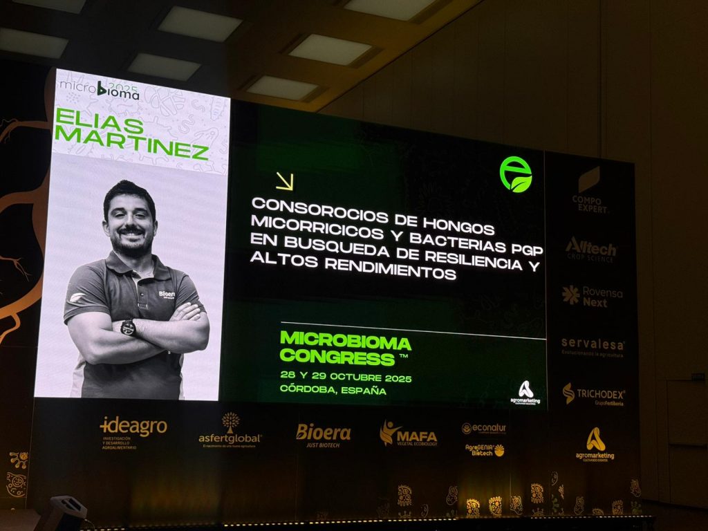 Bioera participó los días 28 y 29 de octubre en el Congreso Internacional Microbioma 2025, celebrado en Córdoba, un referente mundial en biotecnología aplicada a la agricultura. Como Sponsor Oro del evento, Bioera reforzó su compromiso con la investigación, la innovación y la divulgación técnica en el ámbito de los microorganismos y la salud del suelo, pilares fundamentales para el futuro del sector agrícola.
